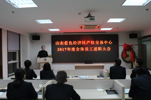 1月22日,山东蓝色经济区产权交易中心2017年度全员述职大会在交易大厅召开。中心总经理耿良、全体员工及分支机构、办事处负责人参加会议。