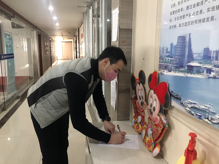 “疫情就是命令,防控就是责任”,为确保蓝产权广大客户及全体员工的健康安全,蓝产权严格按照疫情防控工作操作流程,层层落实责任,切实认真做好日常防控排查管理:身份核验、签到,上下班测体温,全员戴口罩,公共空间消毒;分散就餐,不开展集聚性活动,员工不聚餐聚会;经常开窗通风,保持空气流通。同时,各部门结合业务实际,运用线上方式及时与客户进行信息对接,切实跟进服务,保障客户利益。